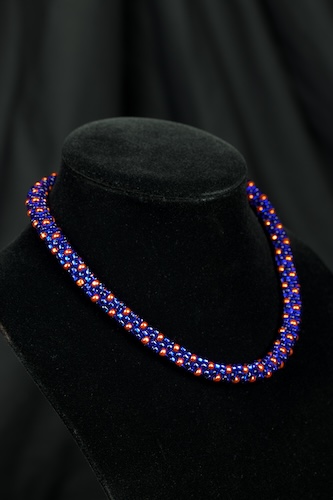 Here’s an idea whose time has come: pairing the traditional Japanese braiding technique with glass beads! Working on a portable foam board, we will learn to make this chunky splendor – a necklace in your favorite colors that feels smooth and luxurious around your neck. No previous braiding experience necessary.