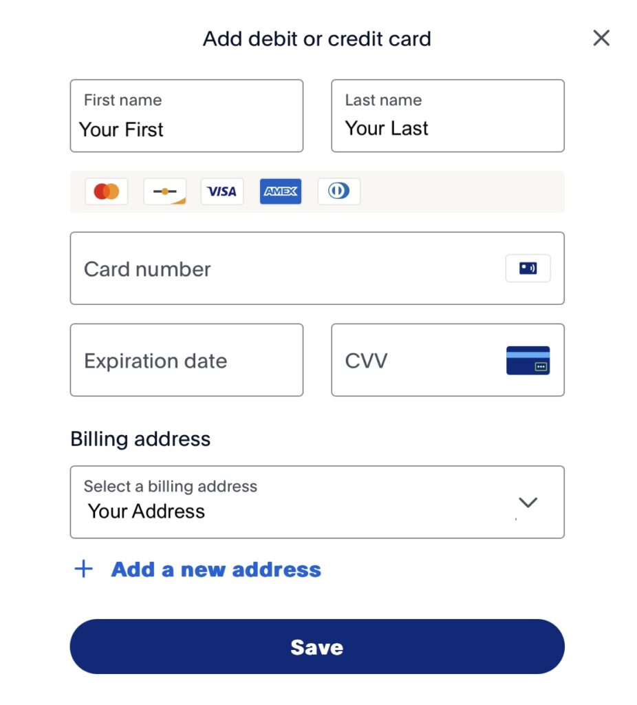 From here you can select your PayPal account options, or apply for a PayPal Credit Card. If you don’t have a credit card tied to your PayPal account you can click “Add debit or credit card” to enter that information.